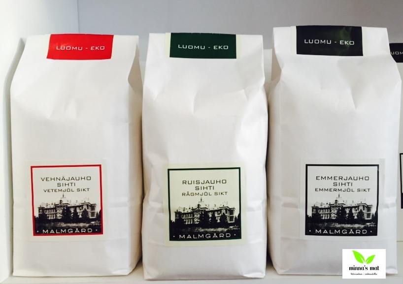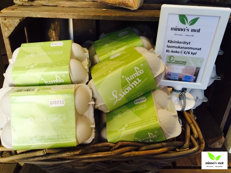 Kannattaa käydä hakemassa myös ihanan isoja Kuorttisen luomukanalan jumbo munia ja Malmgårdin luomu jauhoja vaikkapa leipomiseen.