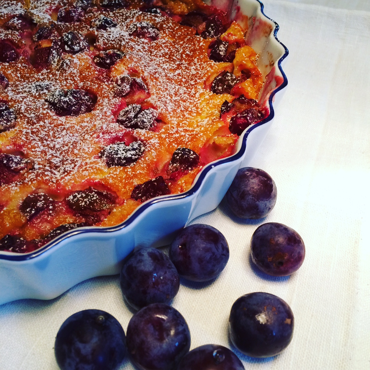 Viime yön trooppisen myrskyn jäljiltä kypsät kriikunat odottivat kerääjää pihallamme. Päätin kokeilla Clafoutista eli Ranskalaista pannukakkua. Alkuperäisessä reseptissä oli hapankirsikoita, mutta toimii aivan loistavasti myös kriikunoista.