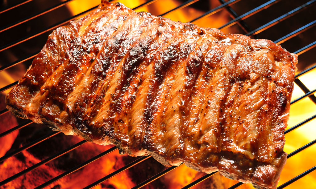 Laita Ribsit uunivuokaan ja valele BBQ-kastikkeella. Voit marinoida (myös lyhyempi aika riittää) lihoja yön yli ja laittaa uuniin hautumaan 1,5 tunniksi. Älä käytä kaikkea BBQ-kastiketta tässä vaiheessa, vaan säästä n. puolet grillaukseen. Ennen syöntiä grillaa lihat ja valele BBQ-kastikkeella.